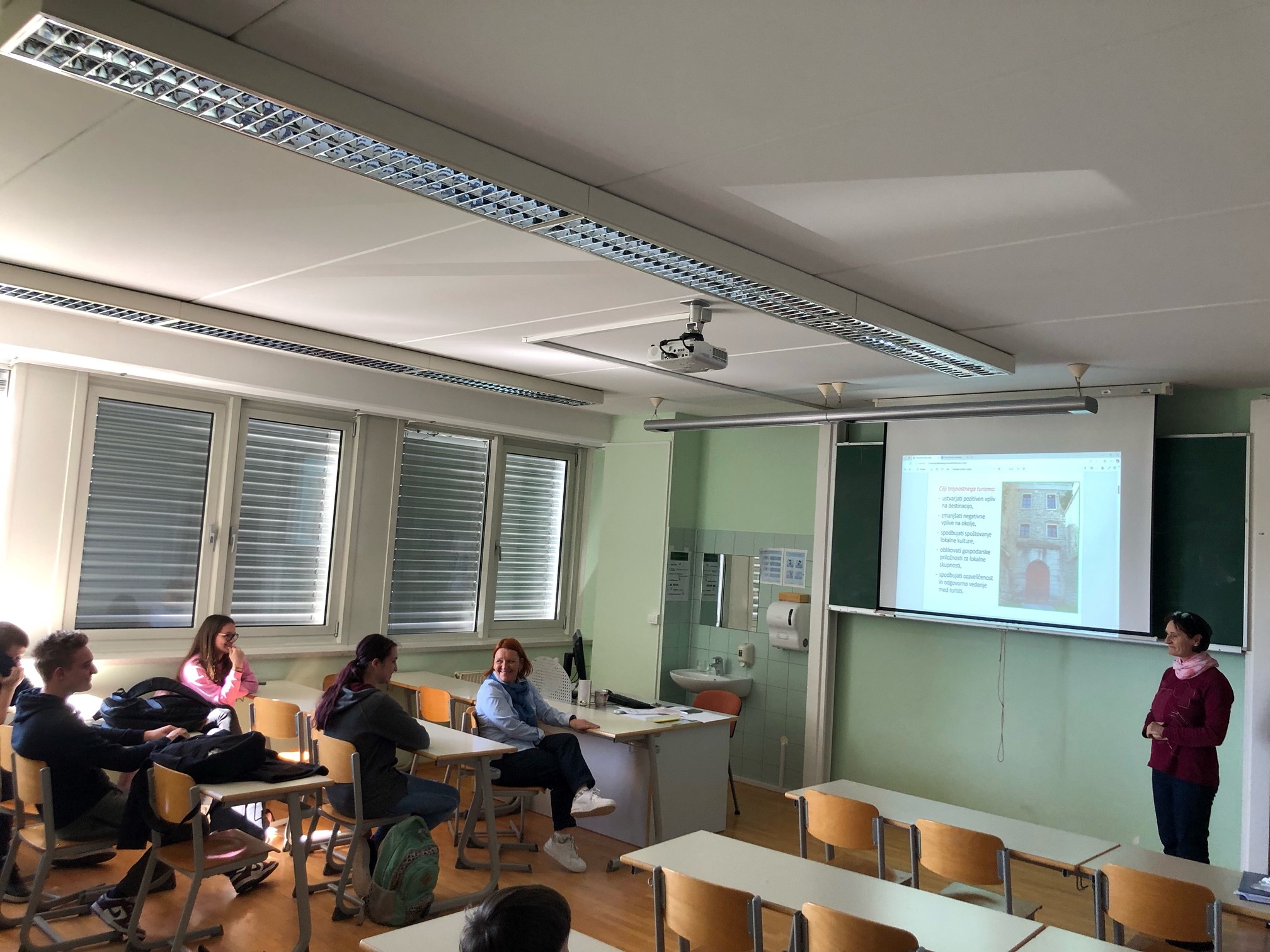 O trajnostnem turizmu pa nam je predavala tudi prof. Greta Černilogar 👩🏫, ki nam je nekaj tednov nazaj pripravila delavnico o trajnostnem turizmu, kar nam je razširilo obzorja 🌱 ter nas tako tudi pripravilo za prej omenjeni obisk.